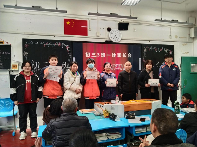 第二议程由学校领导为在诊断性考试中获得特优生称号的学生家长颁奖。立榜样,树标杆,营造良好的奋进氛围。