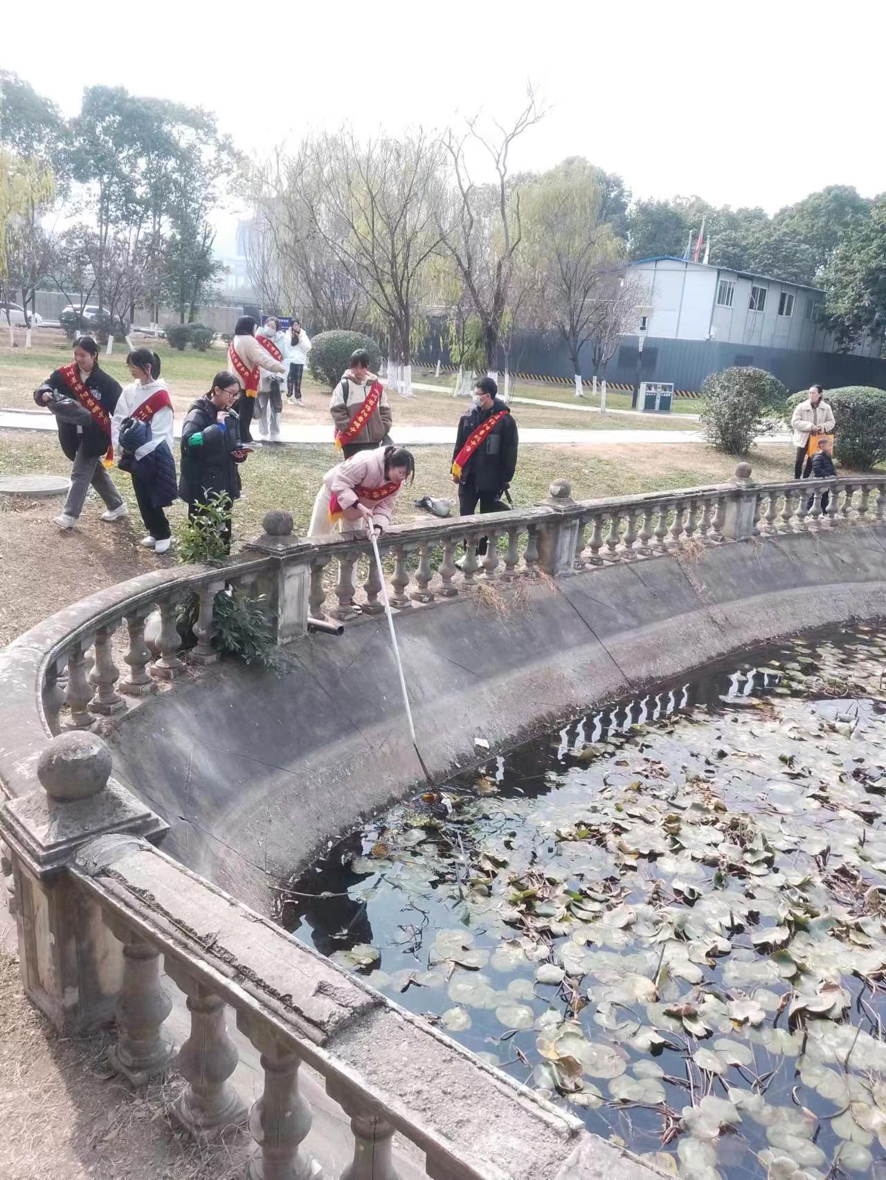 莲花池中的白色垃圾较多,志愿者们利用铁耙,尽力打捞。打捞过程虽然较为辛苦,但志愿者们看见打捞干净的莲花池都感到无比自豪。保护环境需要依靠大家共同保护,天更蓝,水更绿,我们的家园才能更美丽。