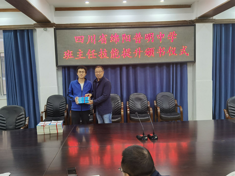我校学期都会为班主任订阅相关的书籍杂志,先后给班主任发放了《班主任工作漫谈》《第56号教室的奇迹》《班主任之友》等书籍。2021年10月11日,我校在三楼会议室举行了2021年班主任技能提升颁书仪式。会议由政教处傅小柯主任主持,各年级德育主任参加了会议。在会上,学校分管德育工作的王德广校长将本学期学校为班主任购买的《班主任突围》一书颁发给各年级德育主任。王校长在会上强调各年级要努力引导班主任提升自我素养,做一名与时俱进地班主任,让班主任工作变得更加轻松快乐。同时,各年级要以此次颁书仪式为契机,根据各年级学生的特点,做好班主任培训,加强班主任队伍建设。