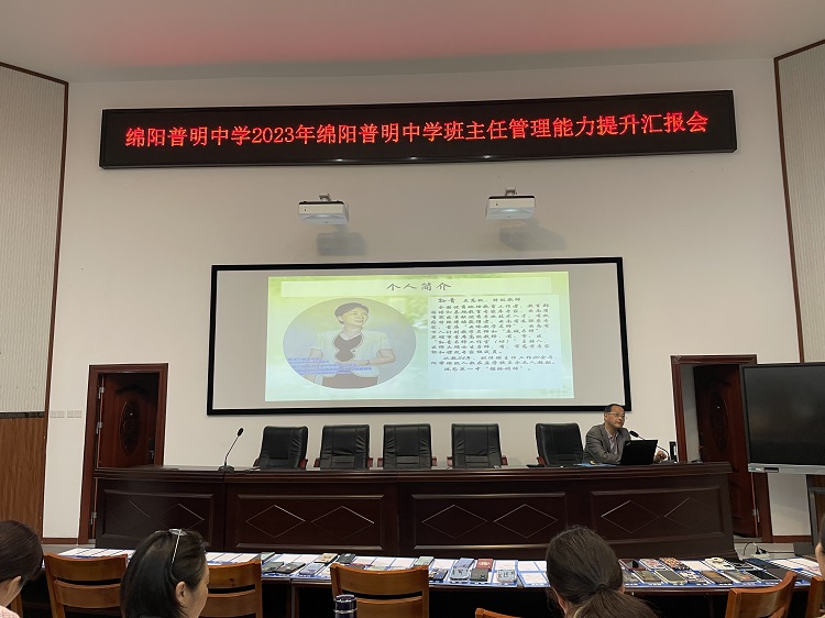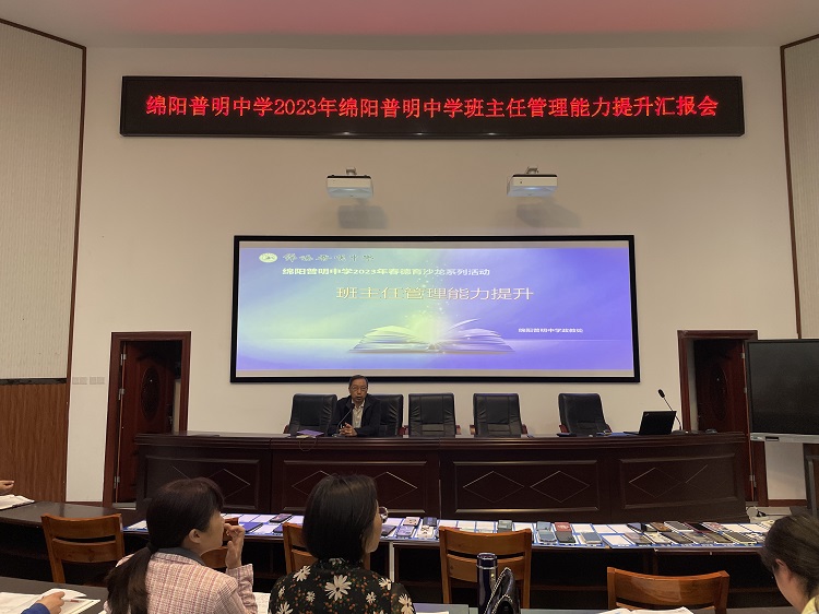 班主任工作是一门哲学艺术,一种匠心传承,里面蕴藏着无限价值吸引力的哲学真谛,繁杂而厚重。班主任工作的点滴,潜移默化地影响着孩子们的现在,映照着孩子们的未来,其价值深度显而易见。爱岗敬业,爱生如子,爱校如家的精神品质在我们班主任的身上体现得淋漓尽致。为了加强班主任队伍建设,促进班主任的专业成长,绵阳普明中学于2023年5月9日开展了德育沙龙系列活动——班主任管理能力提升。
