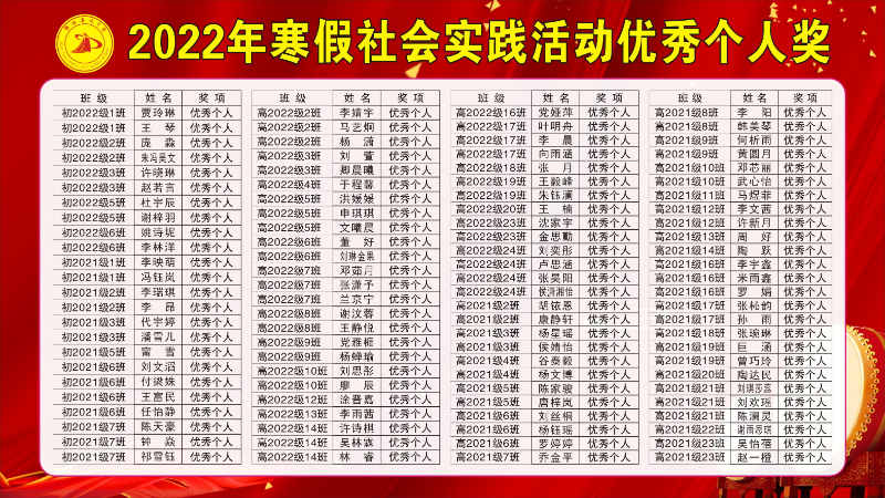 2022年秋季学期寒假社会实践活动优秀表彰名单