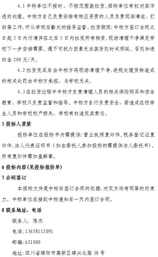 四川省绵阳普明中学关于报废一批学生课桌椅招标书