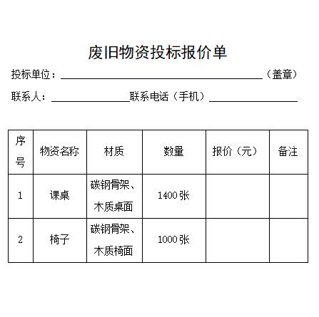 四川省绵阳普明中学2022年关于报废一批学生课桌椅招标书