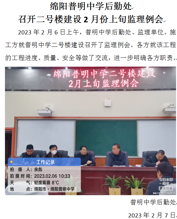 绵阳普明中学后勤处召开二号楼建设2月份上旬监理例会