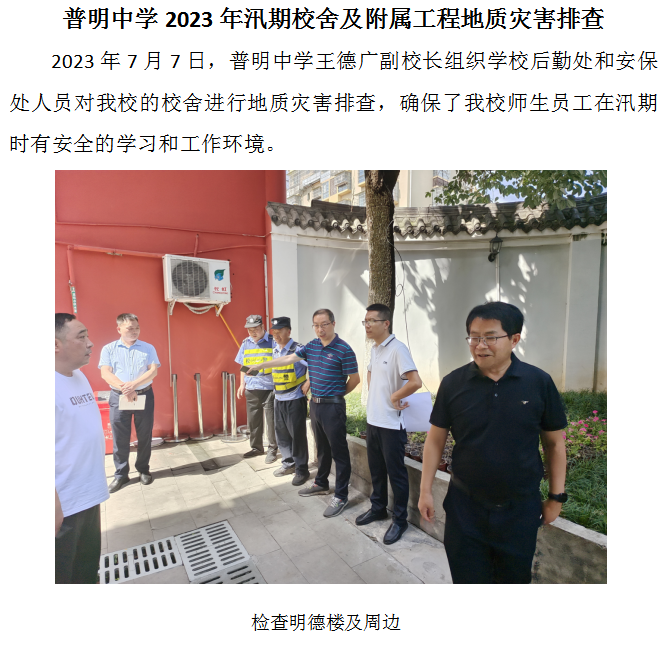 普明中学2023年汛期校舍及附属工程地质灾害排查