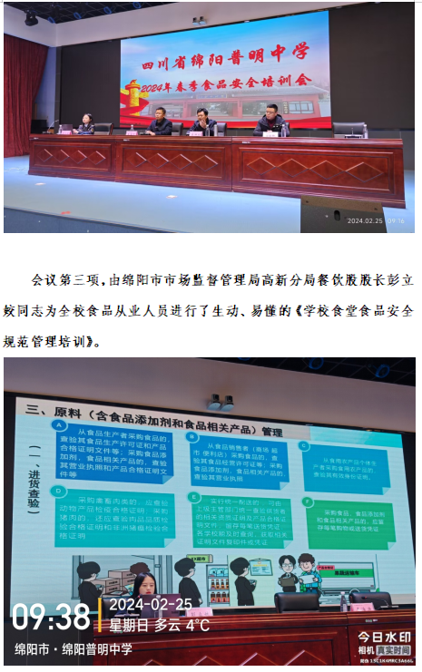 四川省绵阳普明中学2024年春季食品安全培训