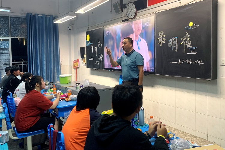 “这将是我三年高中最珍视的中秋了,高三的学习繁重,能够像今天这样,大家聚在一起,赏圆月,吃月饼,畅想未来,真是不容易呀,我们很珍惜,虽然疫情,我们不能回到各自的家团聚,但是和老师们同学们待在一起,也很有意义,你看大家,玩得多开心,脸上都洋溢着幸福的笑容。”高三的同学无比眷念地说道。