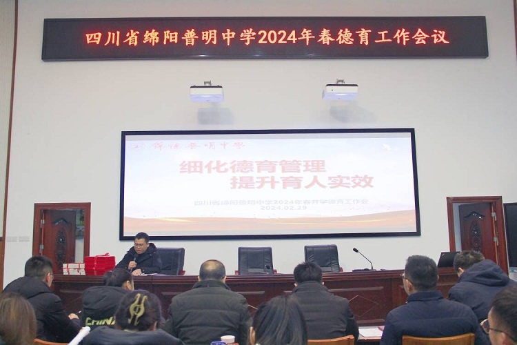 为深入推进学校德育工作,落实立德树人根本任务,确保新学期各项德育工作顺利开展,我校于2月29日晚上7:00在夏竹厅召开了2024年春德育工作会,学校党委书记曾祥均,党委副书记、校长王德广,党委副书记、纪委书记叶波,党委委员、副校长肖艳,党委委员、副校长何勇,党委委员、副校长任俊卿,相关处室负责人,各年级分管领导,年级主任和全体班主任以及心理健康老师参加了本次会议。