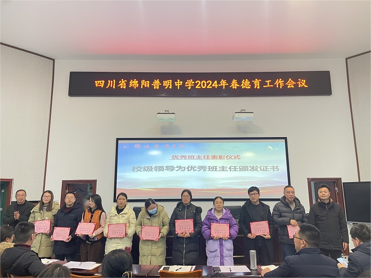 接着,学校党委委员、副校长肖艳对学校德育工作作了总体要求。肖校长从三全育人的角度,强调全体德育工作者要致力于学生的终身发展和全面发展的角度培养人,切记功利化。并着重强调了当前学校德育工作的目标,并就如何达成德育的目标进行了深入的讲解,为本学期的德育重点工作指明了方向。肖校长宣布了优秀班主任表彰名单,曾祥均书记和王德广校长为优秀班主任颁发了证书。