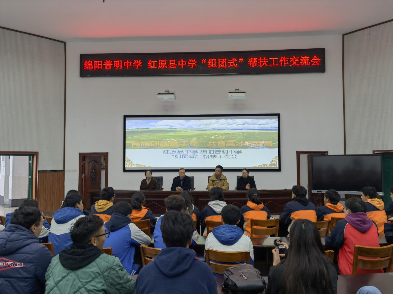 会后红原县中学领导和老师为我校红原籍学生送上了文具,勉励他们好好学习,全体参会人员合影留念,同学们与家乡老师进行了亲切交流,向他们汇报了在普中成长的点滴。