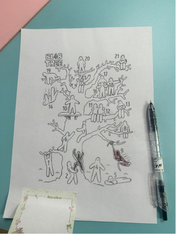 李攀老师借助专业心理工具 “Blob Tree”,让同学们在 “成长树” 上选择代表自己的小人,用隐喻投射的方式,安全外化内心的复杂情绪,卸下心理铠甲,在无评判的氛围中倾诉真实自我。