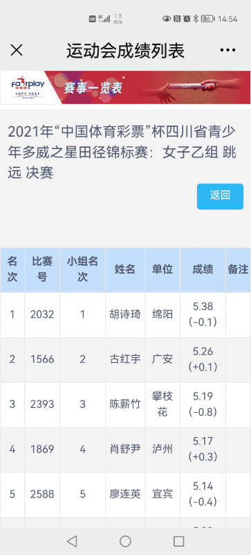 2021年四川省青少年田径锦标赛于2021年7月在乐山市举行,我校初三学生胡诗琦在跳远决赛中以5.38米的成绩力压各市州运动健儿,绵阳市田径协会主席陈滨同志为其颁奖!
