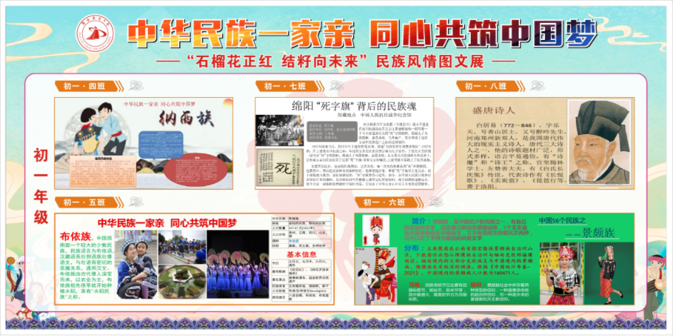 四川省绵阳普明中学“石榴花正红 结籽向未来”沙龙系列活动之”中华民族一家亲 同心共筑中国梦“民族风情图文展