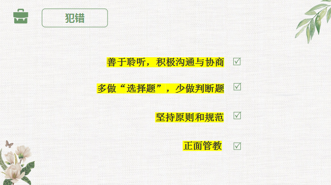 管教是父母引导和保护孩子的一种方式。往往父母会纠结于管教孩子的“方法”,而不是真正关心管教孩子的“目的”。管教孩子的目的不仅仅是引导孩子,更是教育、改善和保护孩子,是爱孩子的一种表现。在对孩子进行管教的时候,表现出来的应该是爱,而不是愤怒,管教的过程中不应该伤害或者羞辱孩子。